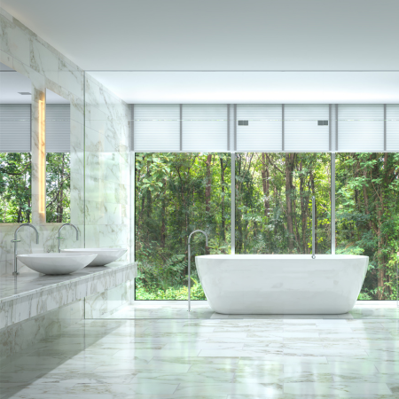 A decoração de ambientes com mármore e granito oferece um toque de luxo e sofisticação, combinando com a durabilidade característica dessas pedras naturais.