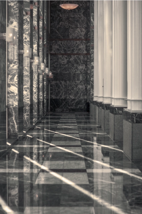 A decoração de áreas comum utilizando mármore e granito oferece uma estética refinada e duradoura, criando espaços visualmente impressionantes.